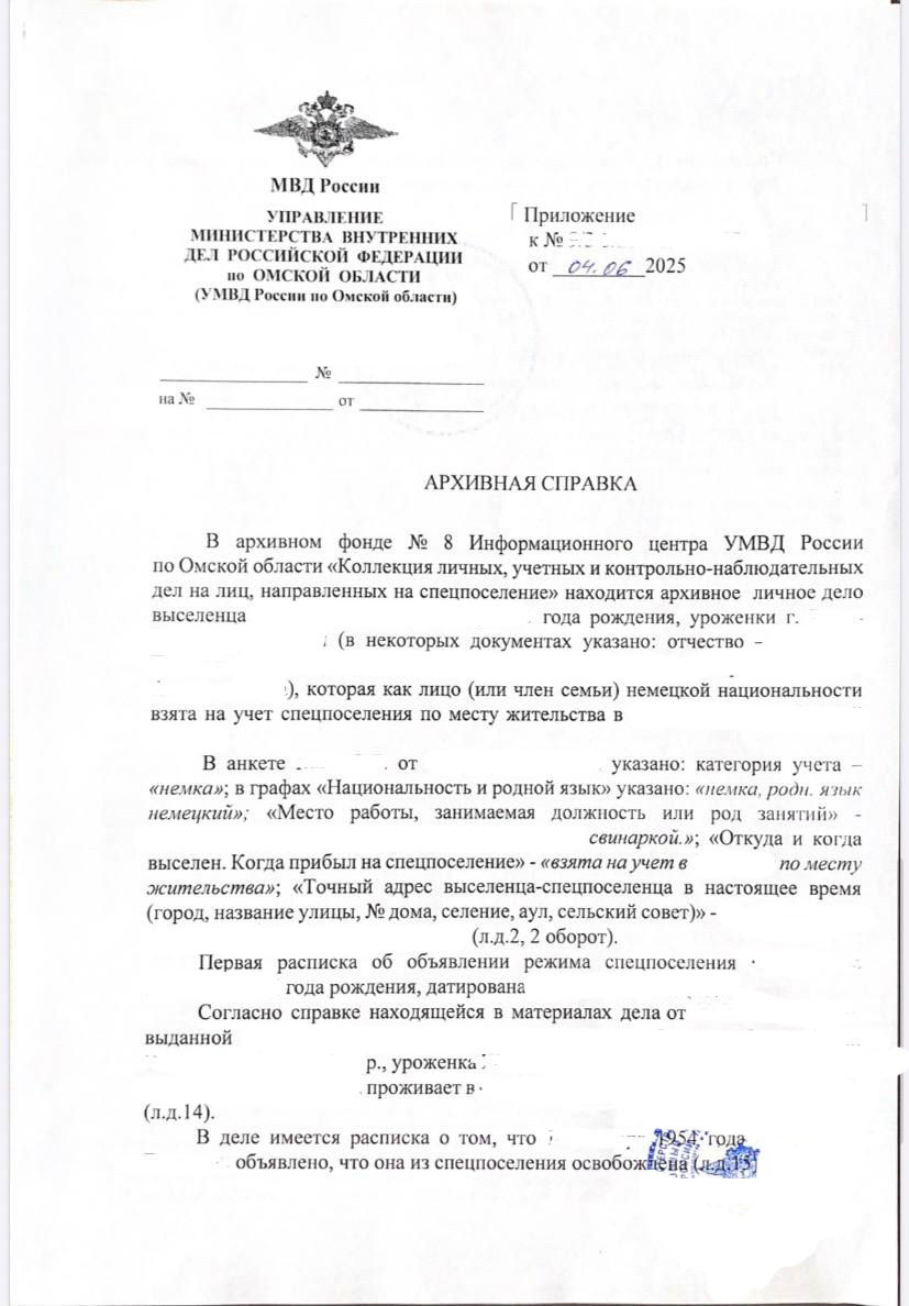 📌 получена архивная справка о репрессии прабабушки из МВД ✔️