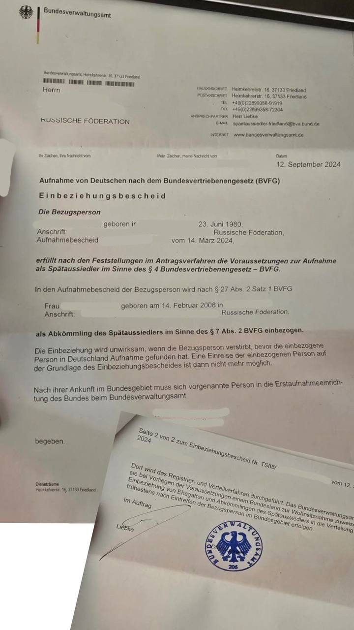 Вызов в Германию дочери позднего переселенца
