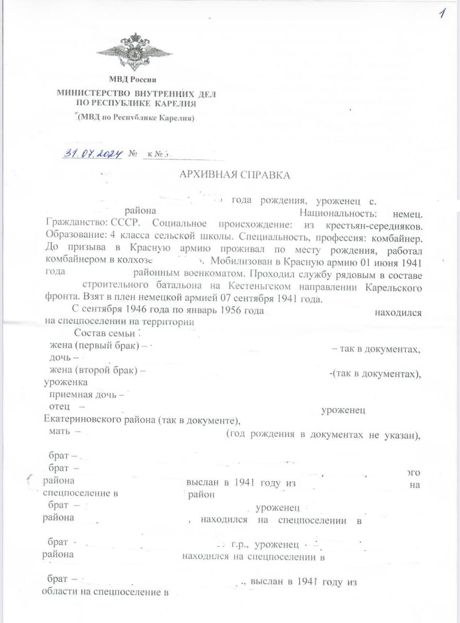 📌 получена архивная справка о репрессии прадедушки из МВД ✔️
